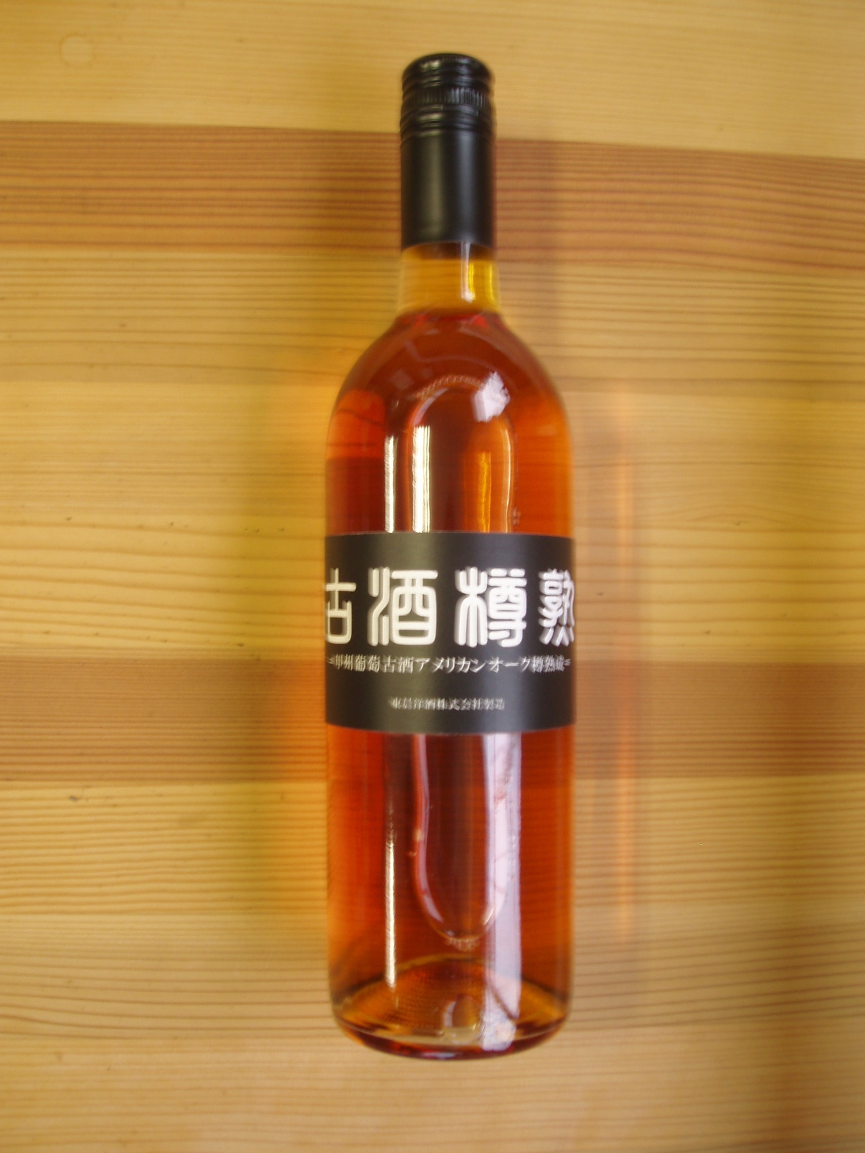 一升瓶で長期熟成していた甲州をアメリカンオーク樽で追熟した、黄金色した辛口ワイン。