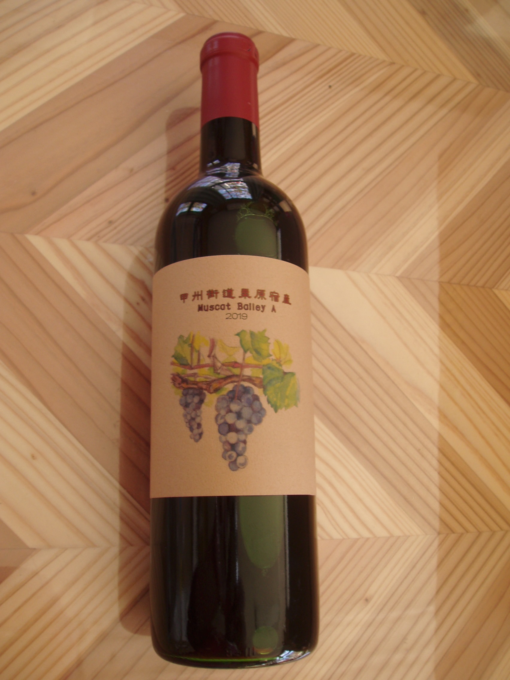 甲州街道栗原宿産マスカットベーリーAをアメリカンオーク樽で貯蔵した、力強い辛口赤ワイン。