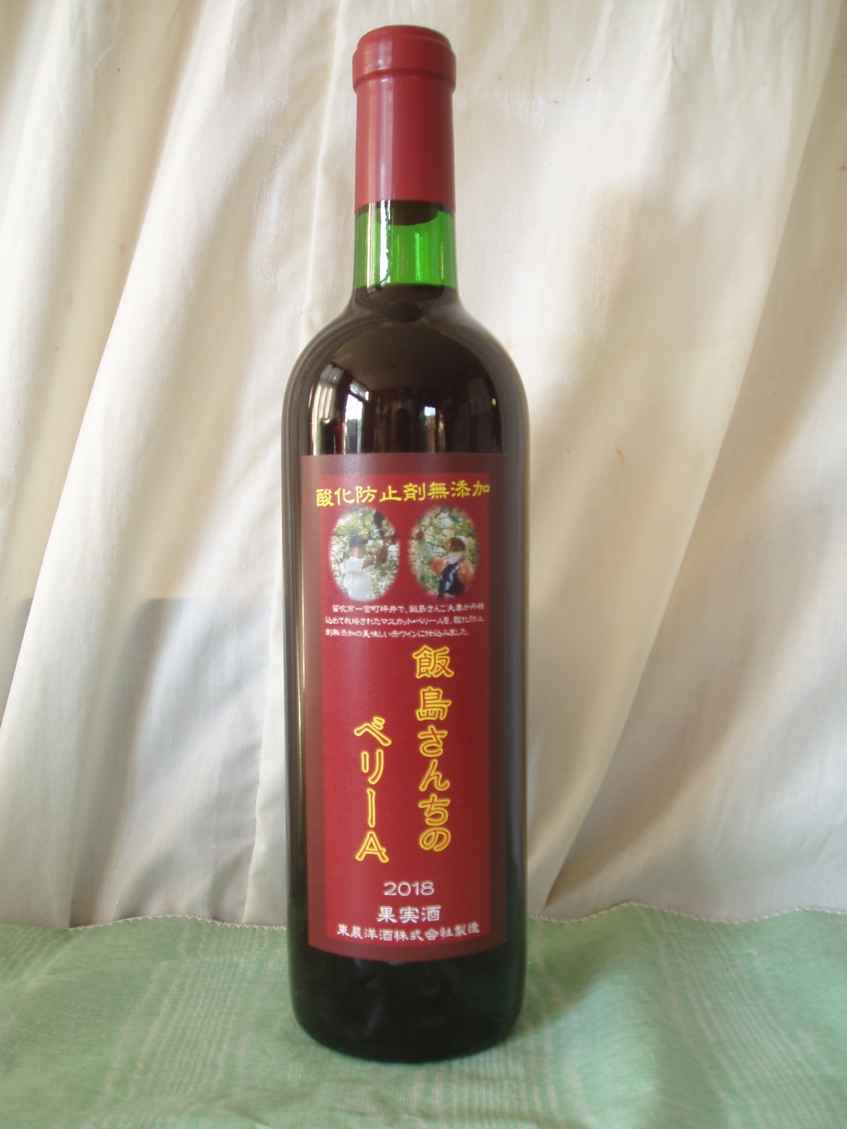 笛吹市一宮町で栽培されている単一の畑のマスカットベーリーAを酸化防止剤無添加で仕込み、加熱処理をせずに瓶詰めしました。